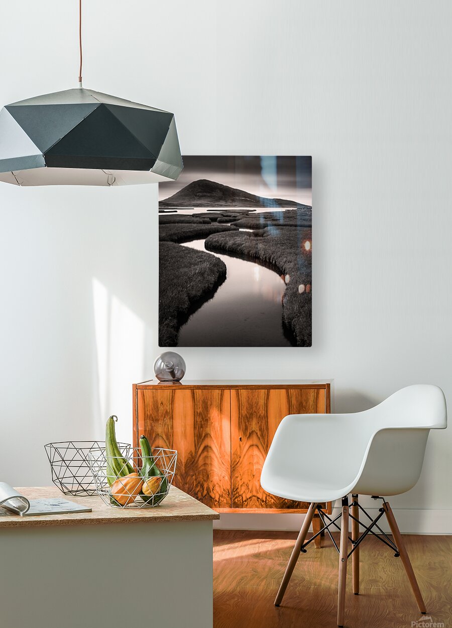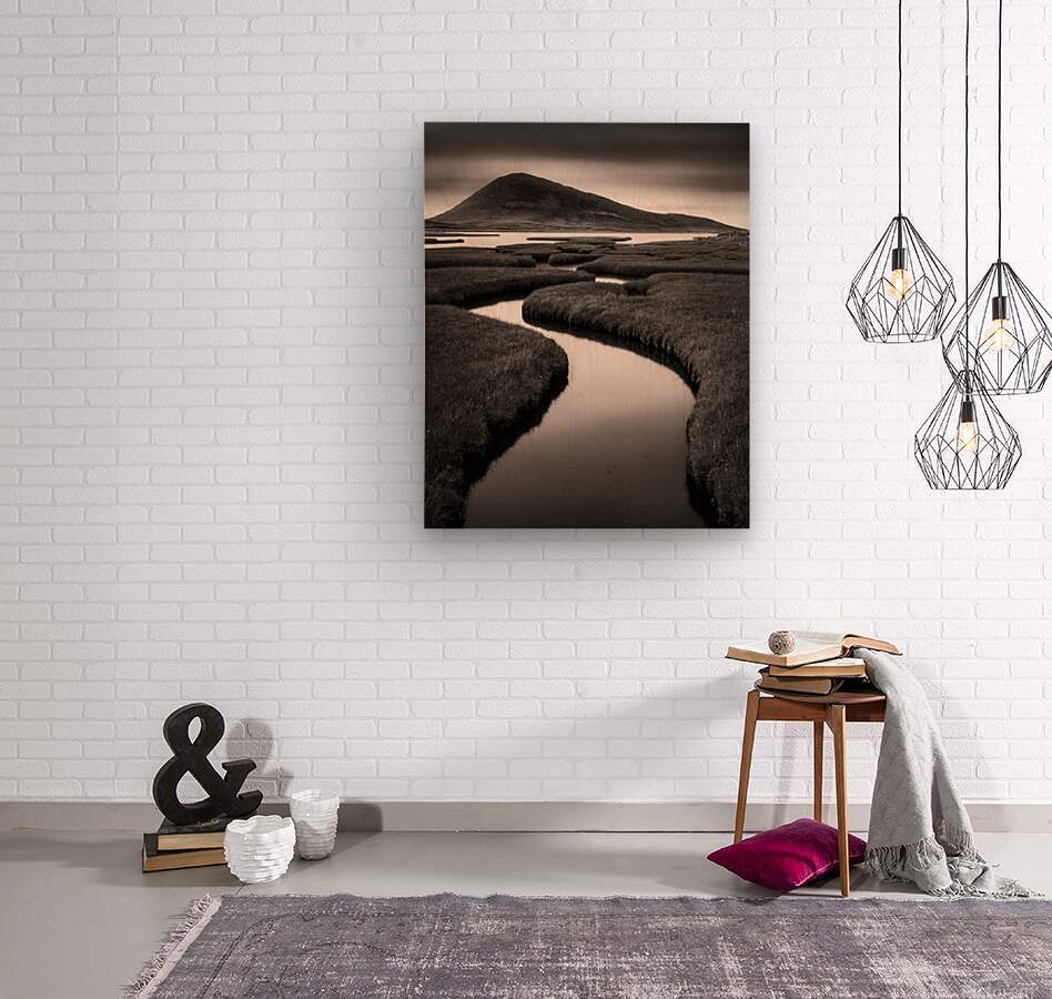A long exposure, warm-toned monochrome photograph of Northton Saltmarsh on the Isle of Harris in the Outer Hebrides, Scotland, UK. This captivating im...[+]
