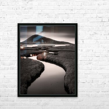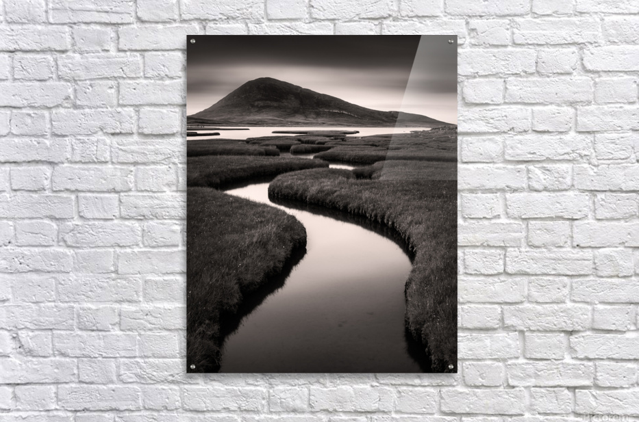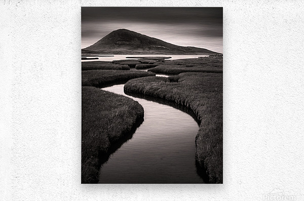 A long exposure, warm-toned monochrome photograph of Northton Saltmarsh on the Isle of Harris in the Outer Hebrides, Scotland, UK. This captivating image captures the serene beauty of the saltmarsh landscape with its smooth, blurred effect created by the long exposure technique. The warm monochrome tones add depth and mood, highlighting the natural textures and tranquil atmosphere of this remote Scottish location. Ideal for those seeking a fine art photograph of the Scottish coast, this image showcases the unique and picturesque environment of the Outer Hebrides.