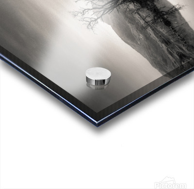 A monochrome photograph capturing the reflection of an ancient, leafless tree in Loch Assynt, set against the serene waters of the Scottish Highlands. This image portrays the tranquil beauty of Scotland’s rugged landscape on a calm day, highlighting the stark contrasts and textures of the bare tree and its mirrored image in the still loch. Ideal for showcasing the ethereal charm of the Scottish Highlands or adding a touch of nature’s quiet elegance to your space. . Please note: This image has a grainy texture because it was photographed on film, which enhances its classic look