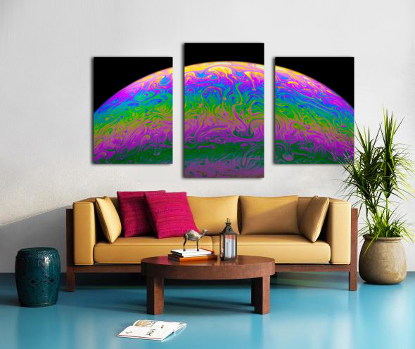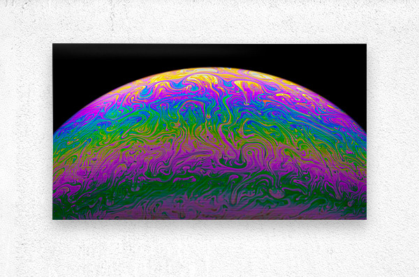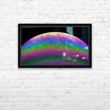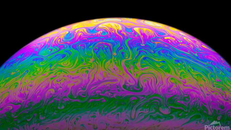 A macro photograph of light reflecting off the surface of a simple soap bubble as the surface tension begins to break down just before it pops. One in...[+]