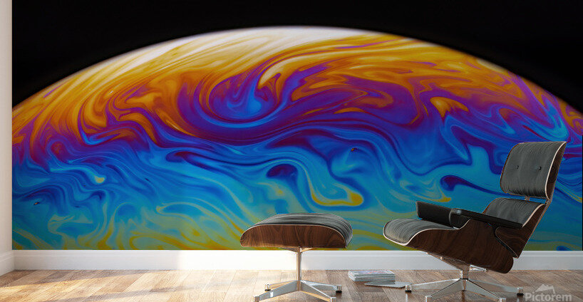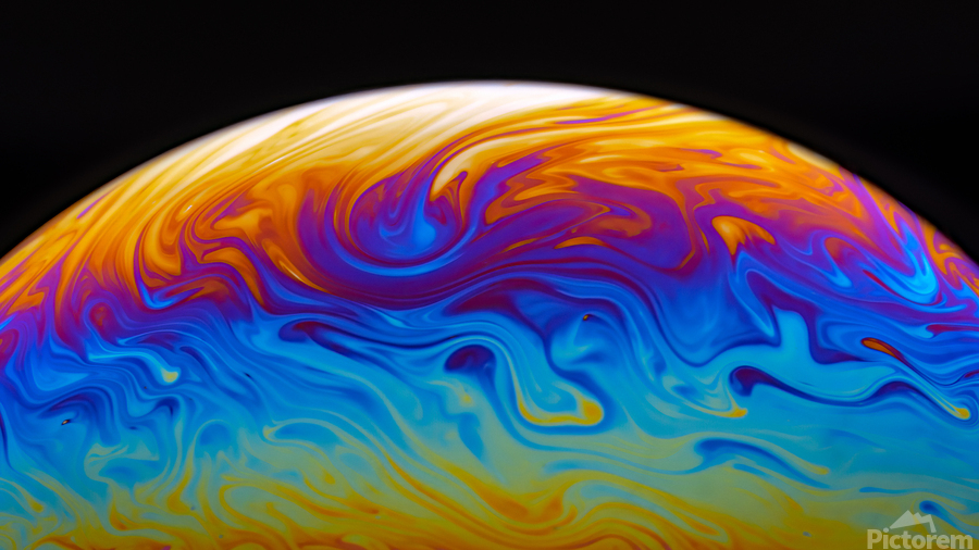 A macro photograph of light reflecting off the surface of a simple soap bubble as the surface tension begins to break down just before it pops. One in...[+]