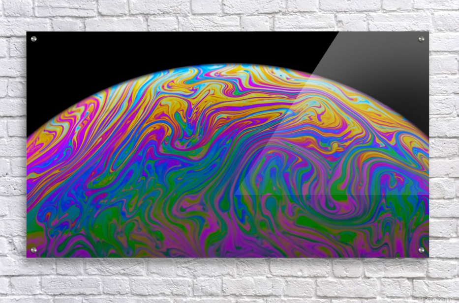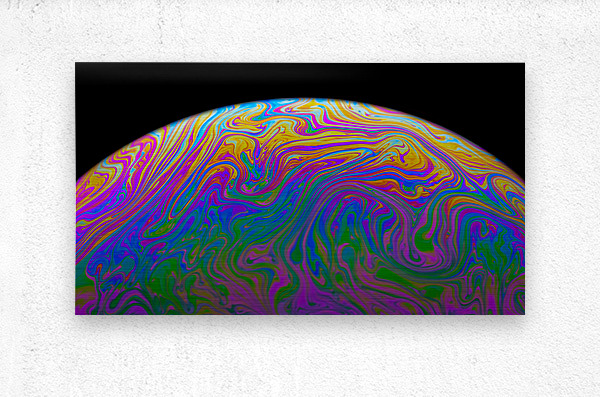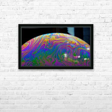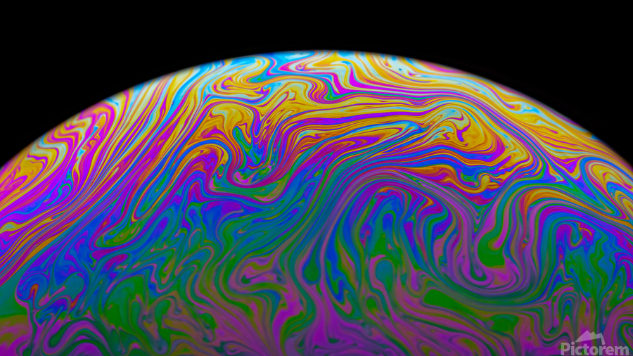 A macro photograph of light reflecting off the surface of a simple soap bubble as the surface tension begins to break down just before it pops. One in...[+]