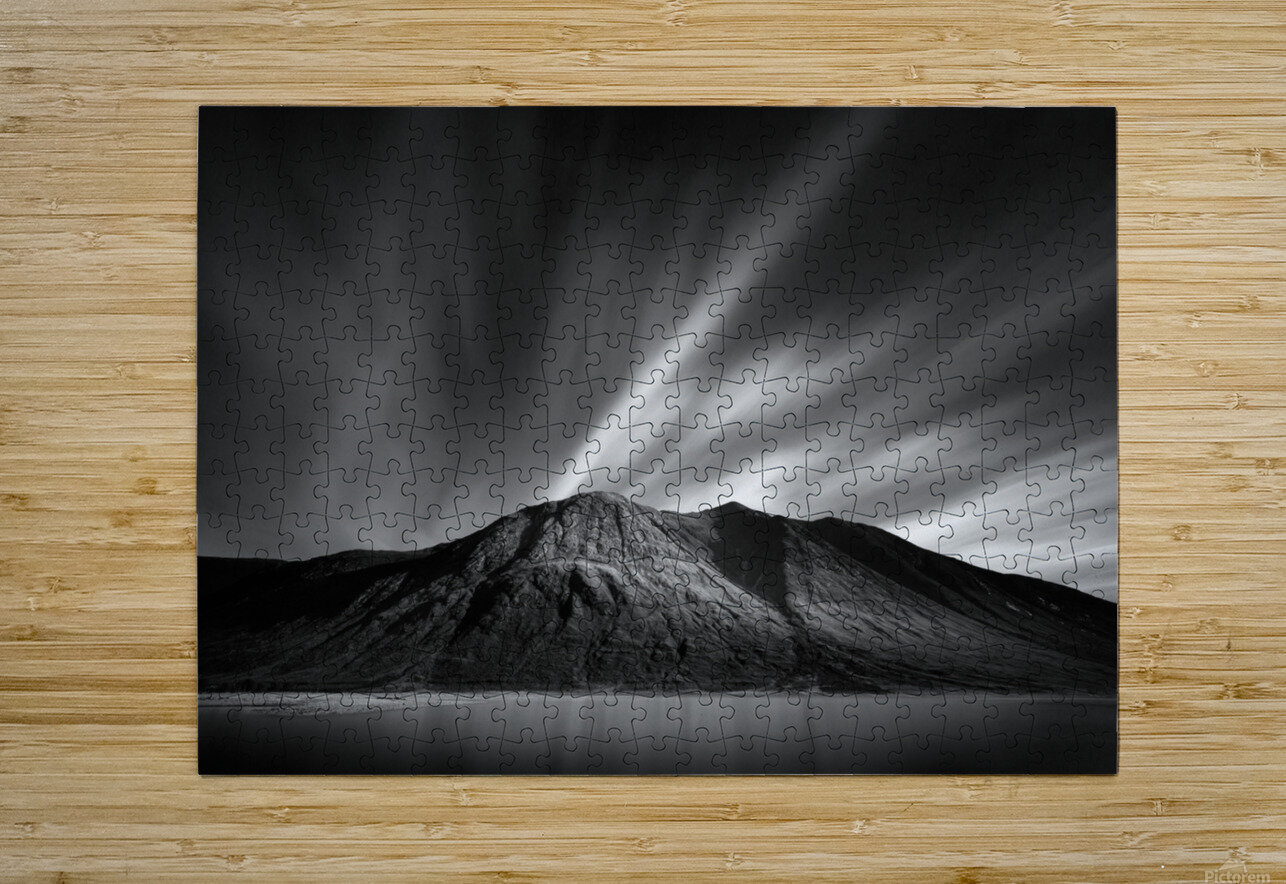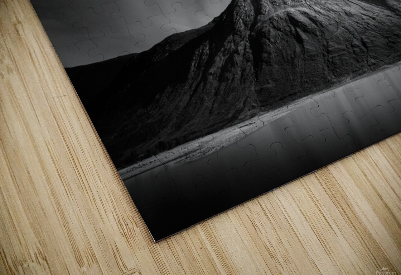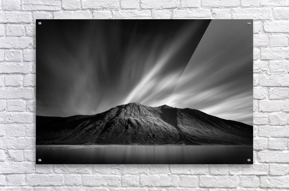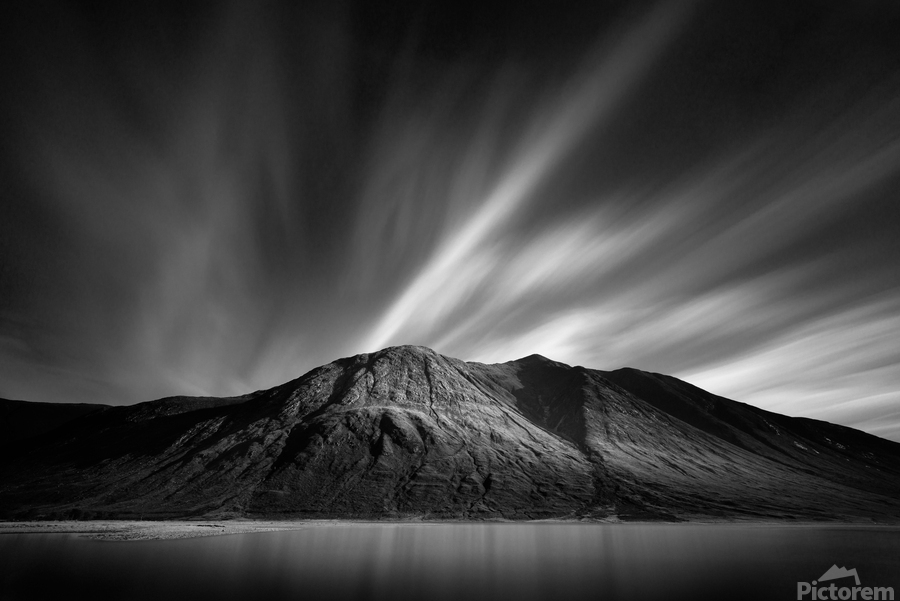 A monochrome long exposure photograph of Ben Starav emerging from the shore of Loch Etive, Scotland. The image captures dramatic clouds streaking acro...[+]