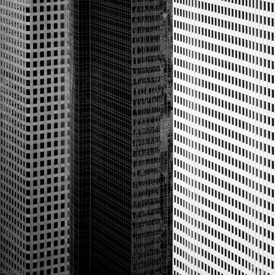 Abstract study of Houston office blocks, side by side, Texas, USA.