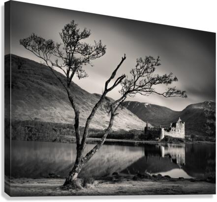A monochrome long exposure photograph of Kilchurn Castle, captured on a serene spring morning in Argyll and Bute, Scotland. The image showcases the ca...[+]