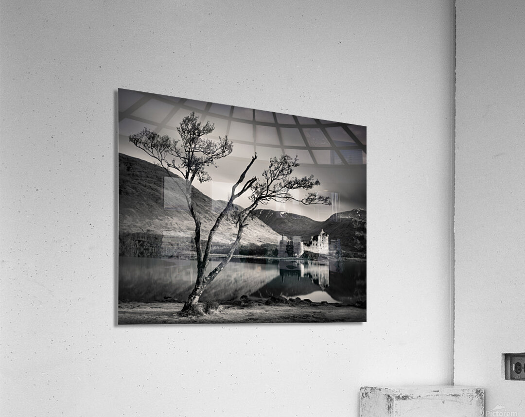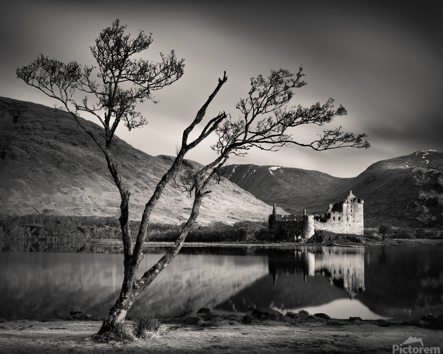 A monochrome long exposure photograph of Kilchurn Castle, captured on a serene spring morning in Argyll and Bute, Scotland. The image showcases the ca...[+]