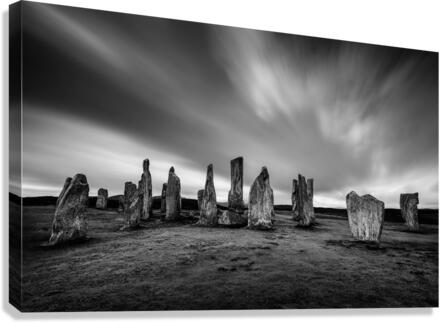 Dark clouds sweep dramatically across the sky above the ancient Callanish Stones, captured here in timeless black and white. The long exposure lends m...[+]
