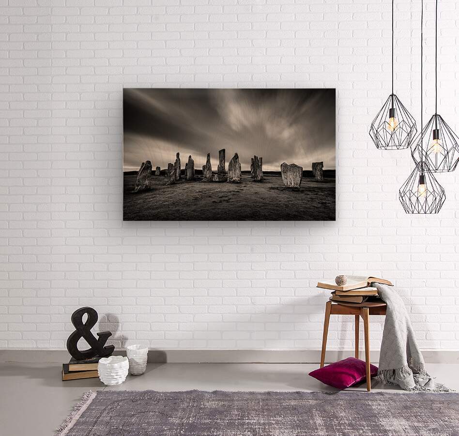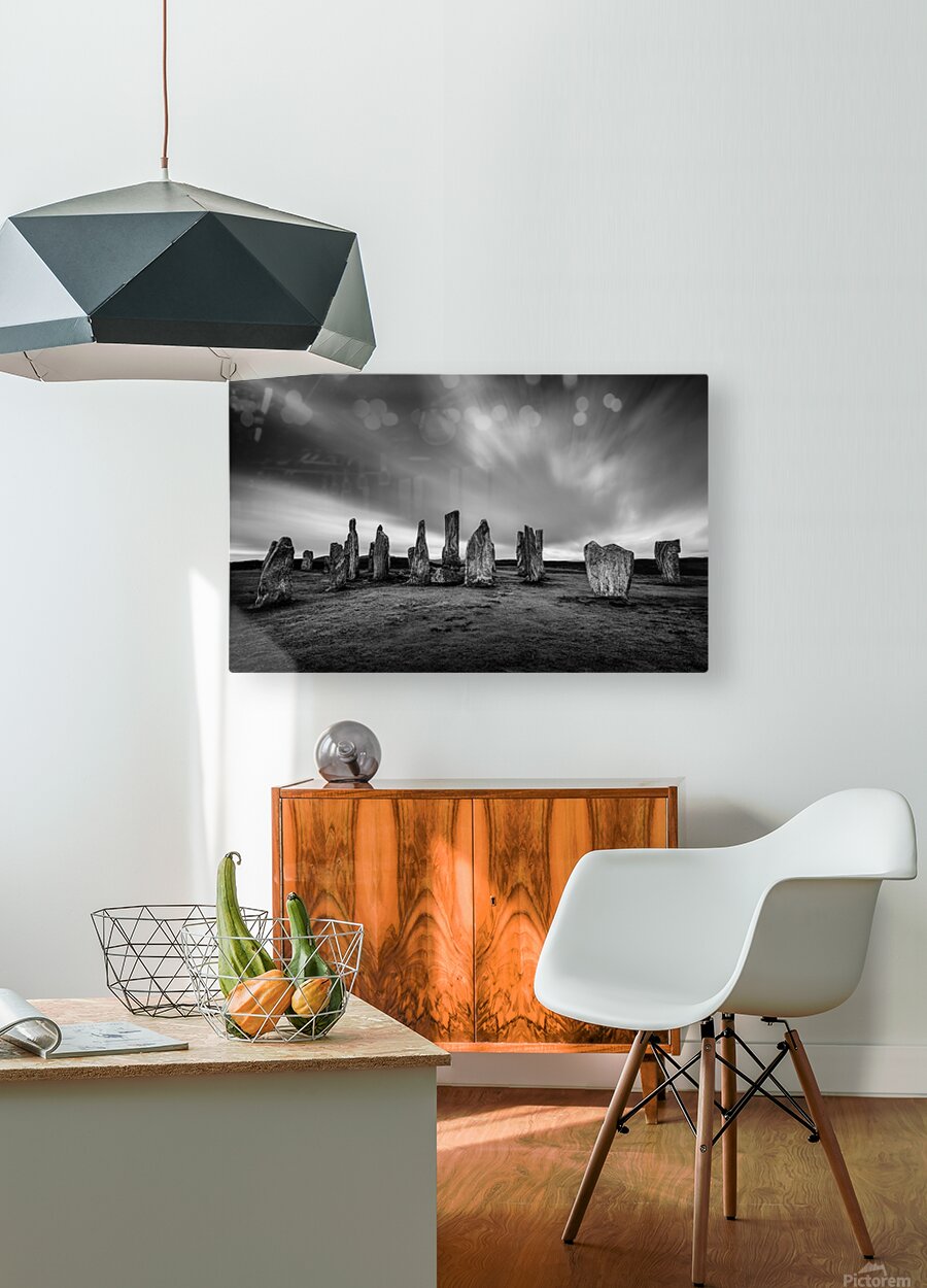 Dark clouds sweep dramatically across the sky above the ancient Callanish Stones, captured here in timeless black and white. The long exposure lends movement to the heavens, contrasting with the steadfast presence of the standing stones below. Their weathered surfaces and varied forms create a striking pattern against the moody horizon. Located on the Isle of Lewis in Scotland’s Outer Hebrides, the Callanish Stones date back nearly 5,000 years. This Neolithic circle is one of the most iconic prehistoric sites in Britain, thought to have been used for ritual or astronomical purposes. The stark monochrome tones emphasize both the mystery and endurance of this ancient place. A perfect photograph for those drawn to ancient history, dramatic skies, and atmospheric landscapes. This image is available as wall art and across a wide range of formats to suit your space or style.