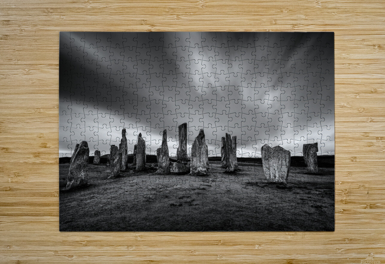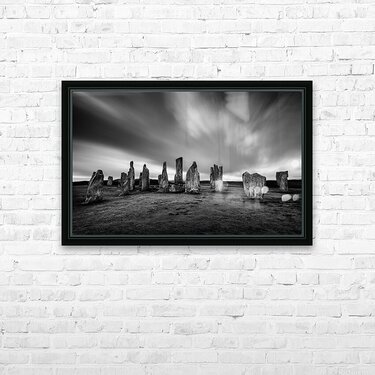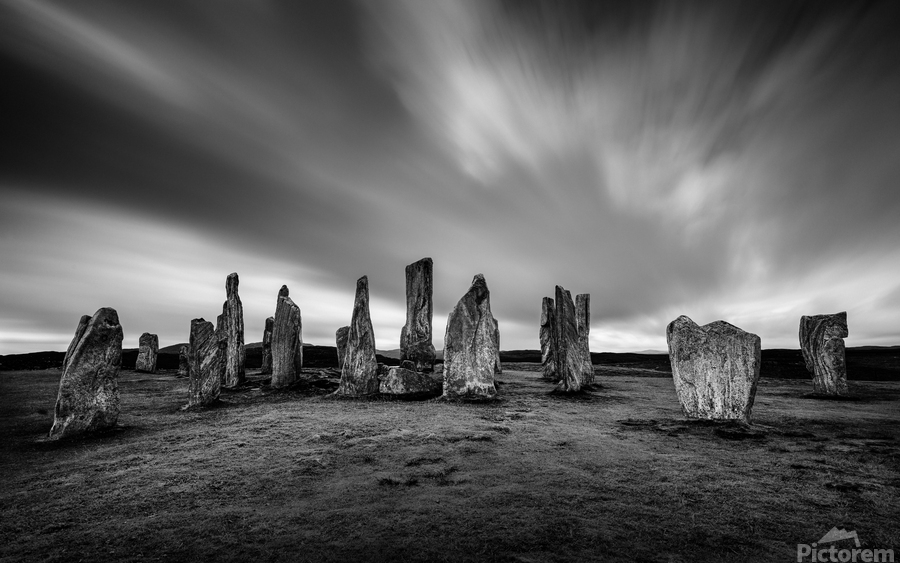 Dark clouds sweep dramatically across the sky above the ancient Callanish Stones, captured here in timeless black and white. The long exposure lends m...[+]