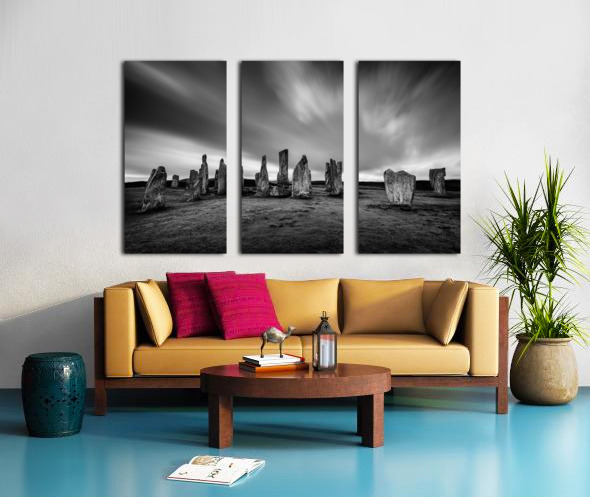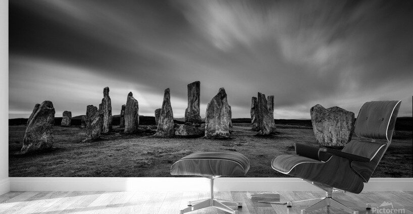 Dark clouds sweep dramatically across the sky above the ancient Callanish Stones, captured here in timeless black and white. The long exposure lends movement to the heavens, contrasting with the steadfast presence of the standing stones below. Their weathered surfaces and varied forms create a striking pattern against the moody horizon. Located on the Isle of Lewis in Scotland’s Outer Hebrides, the Callanish Stones date back nearly 5,000 years. This Neolithic circle is one of the most iconic prehistoric sites in Britain, thought to have been used for ritual or astronomical purposes. The stark monochrome tones emphasize both the mystery and endurance of this ancient place. A perfect photograph for those drawn to ancient history, dramatic skies, and atmospheric landscapes. This image is available as wall art and across a wide range of formats to suit your space or style.