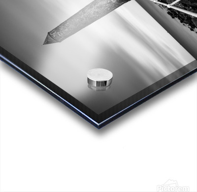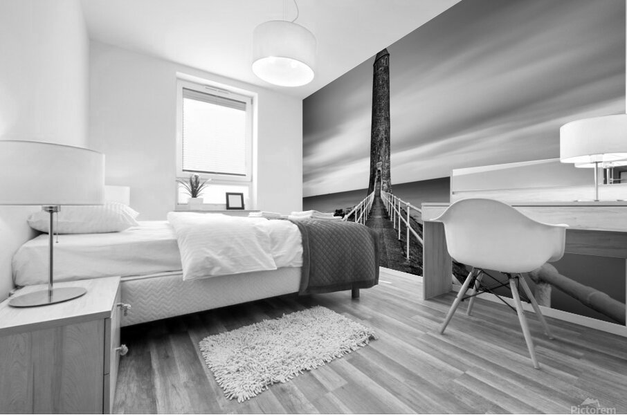 A monochrome, long-exposure photograph capturing The Chaine Memorial Tower in Larne, County Antrim, Northern Ireland. The stillness created by the long exposure highlights the tower’s solitary form against the softened water and sky, evoking a sense of calm and timelessness. A great photograph for those who appreciate architectural landmarks and serene landscapes in a minimalist style.