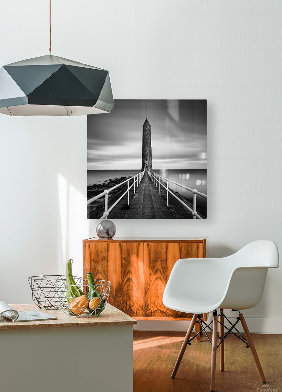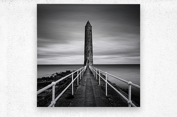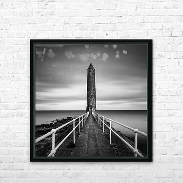 A monochrome, long-exposure photograph capturing The Chaine Memorial Tower in Larne, County Antrim, Northern Ireland. The stillness created by the lon...[+]