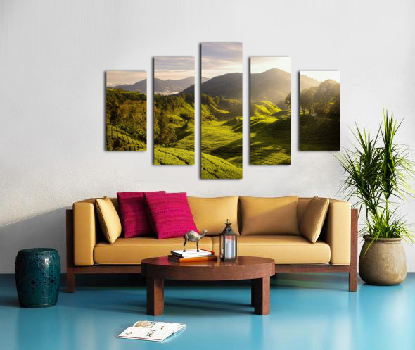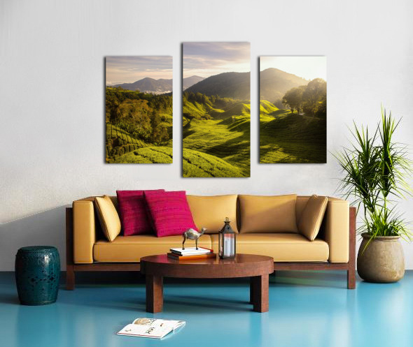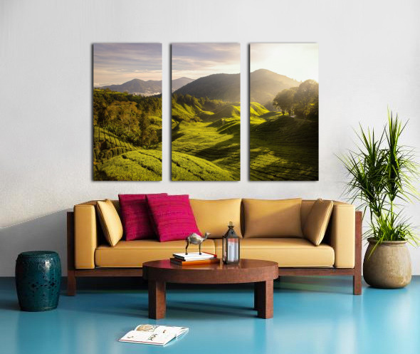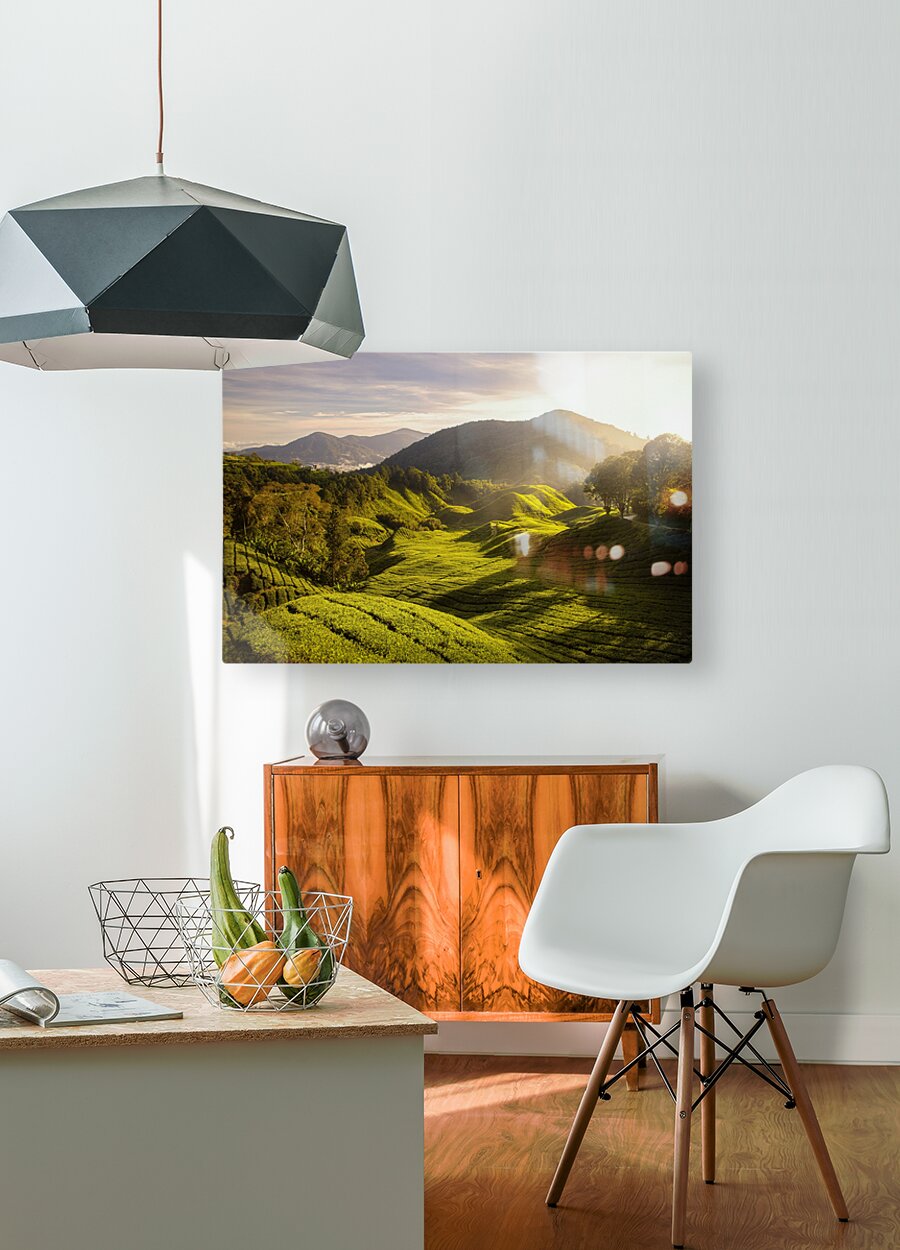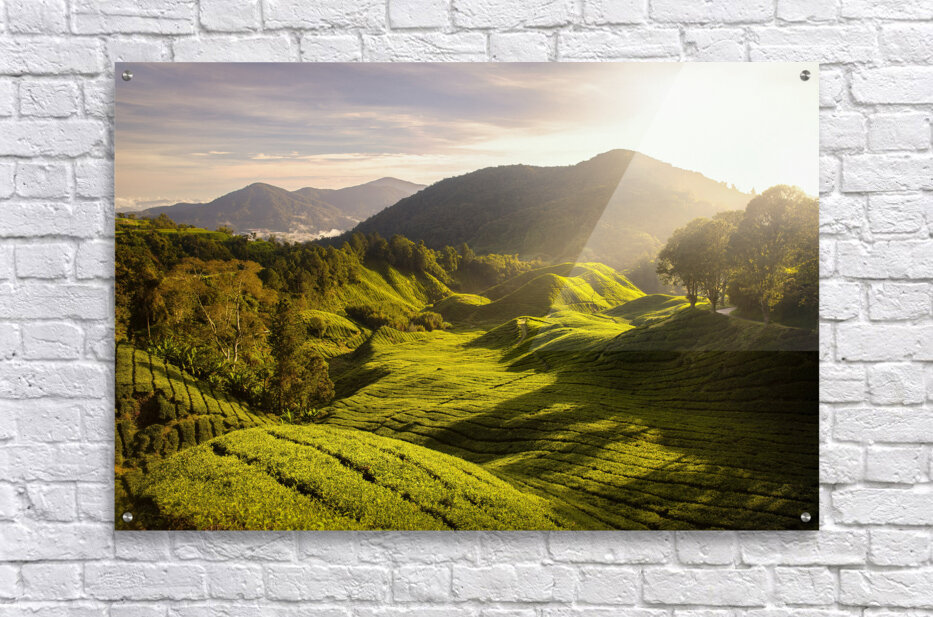 Pour obtenir "Tea Plantation Sunrise" dans une impression encadrée.