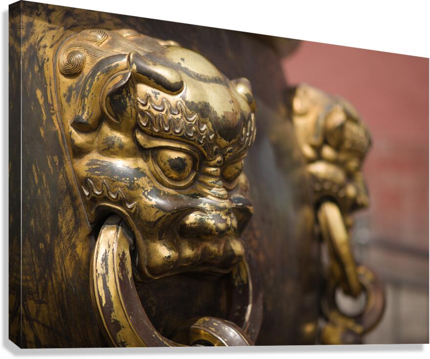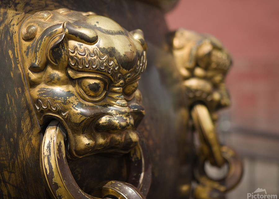 A close-up of an ornate lion's head adorning one of the large bronze cauldrons in Beijing's Forbidden City. These cauldrons, totalling 308 thr...[+]