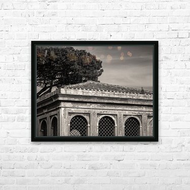 An elegant structure within the historic Farnese Gardens this view of one of the Farnese Aviaries captures the layered history of Rome’s Palatine Hi...[+]
