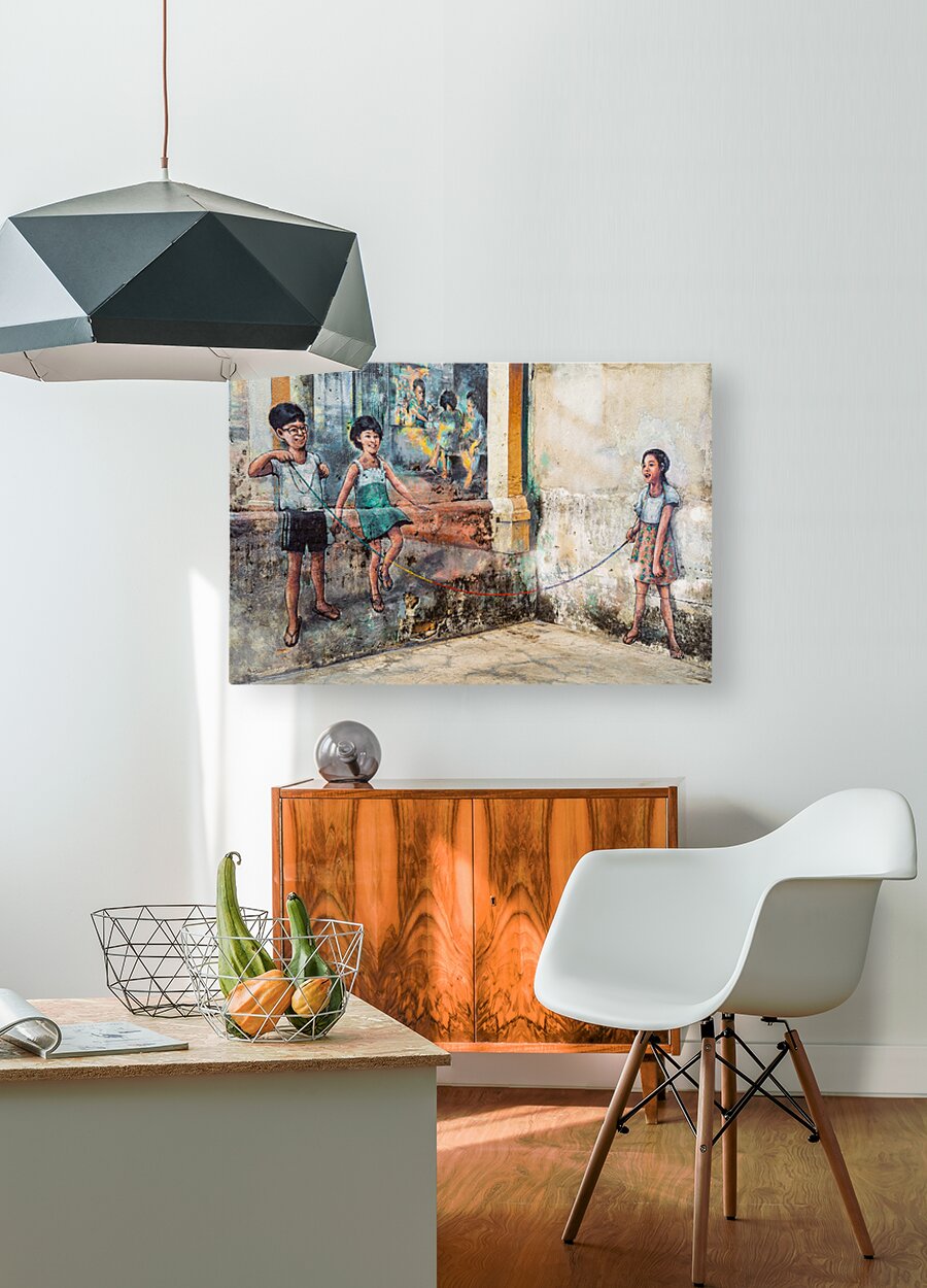 A mural in Kuala Lumpur’s Kwai Chai Hong a historic corner of Chinatown near Petaling Street depicting three children playing with a skipping rope. ...[+]