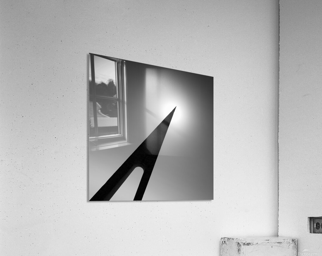 A semi-abstract image of the midday sun caught behind the sharp tip of the Nungesser and Coli aviation monument in Étretat France. The stark contrast...[+]
