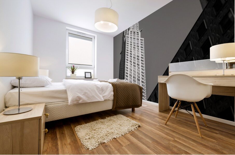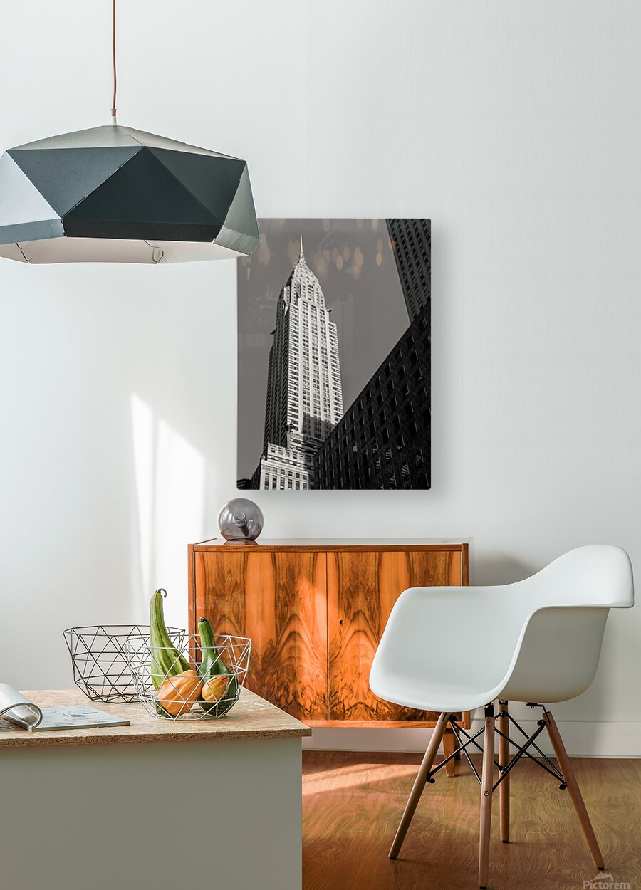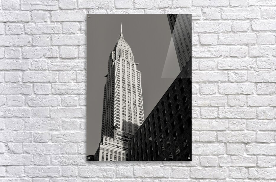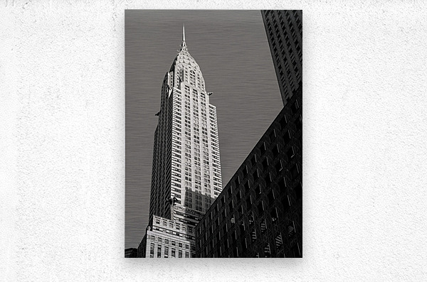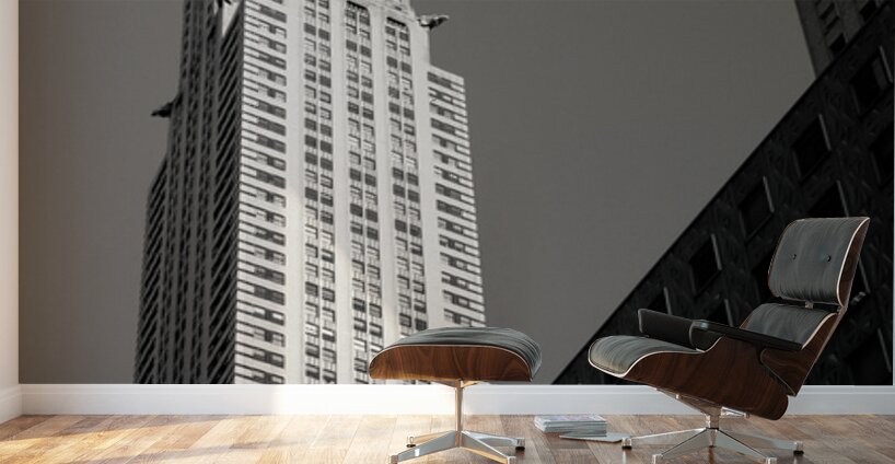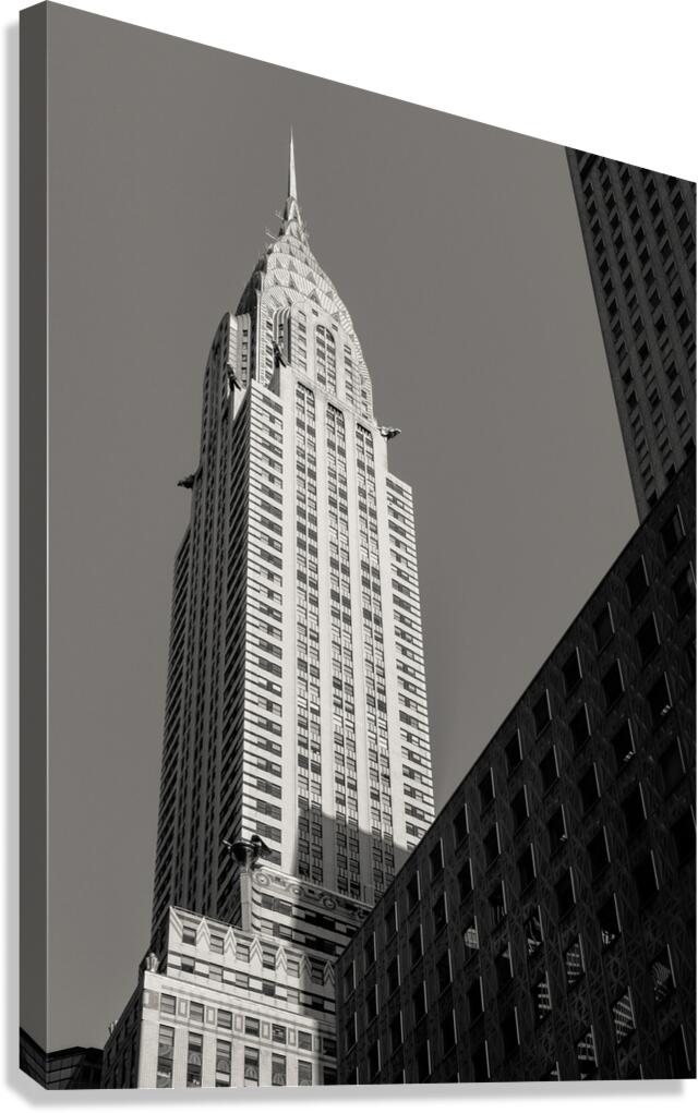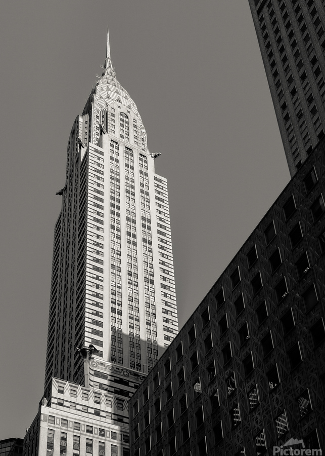The Chrysler Building rises sharply in morning sunshine in New York captured from a low angle against a clear sky. The monochrome treatment highlights the building’s iconic Art Deco lines and gleaming spire emphasizing its striking form and architectural elegance. Completed in 1930 the Chrysler Building is one of New York City’s most recognisable landmarks. Its stainless steel crown and distinctive setbacks exemplify Art Deco design and have made it a symbol of the city’s skyline and architectural ambition. This image is perfect for architecture enthusiasts lovers of New York City or anyone drawn to iconic urban landmarks. It is available as wall art and across a wide range of formats to suit your space or style.