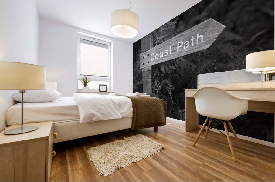 A weathered wooden sign stands quietly among the ferns its arrow pointing the way forward with the words Coast Path neatly etched in white. The monochrome tones lend a timeless almost nostalgic quality to the scene where the textures of rough wood and soft foliage combine to create a sense of stillness and simplicity. It feels like an invitation to pause breathe and follow the path toward the sea. This image was taken in Dumfries and Galloway Scotland a region known for its rugged coastline hidden coves and tranquil walking routes that wind through unspoilt landscapes. The photograph captures not just a signpost but the spirit of discovery that defines these coastal trails. Perfect for lovers of walking wild landscapes and understated details this image is available as wall art and across a wide range of formats to suit your space or style.