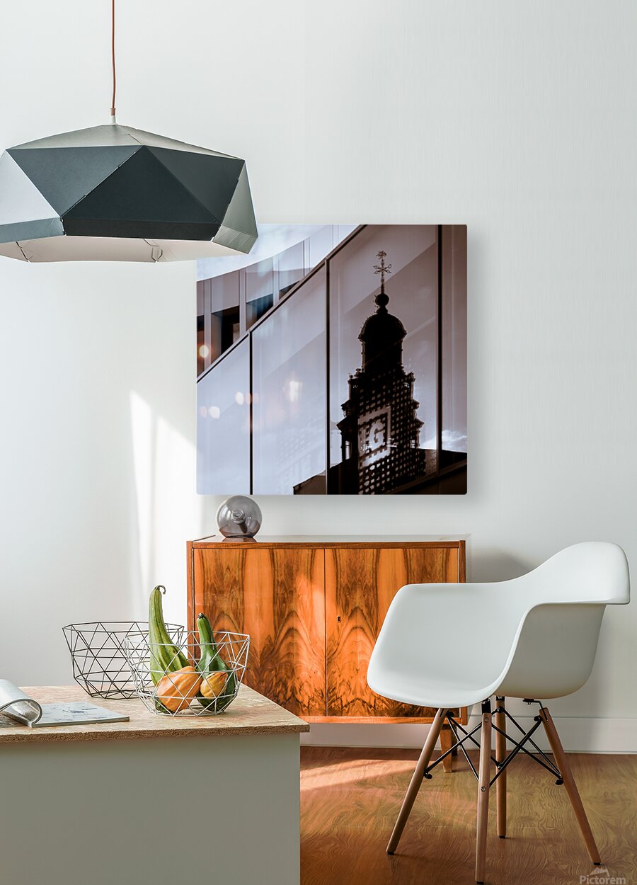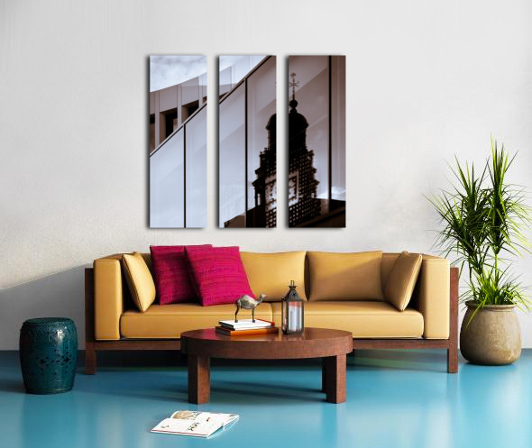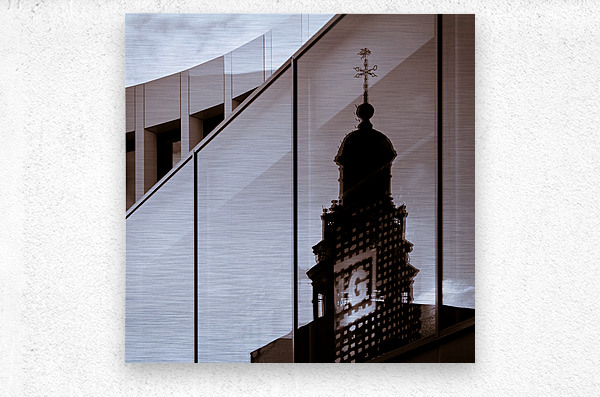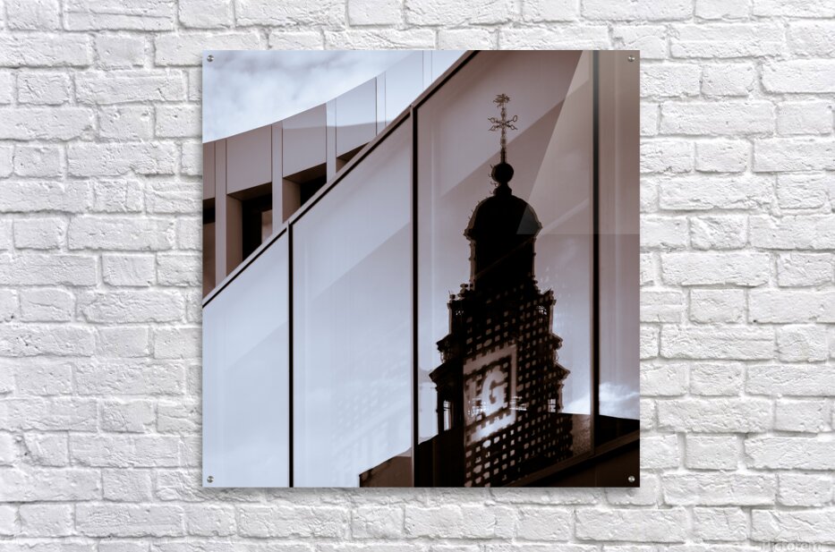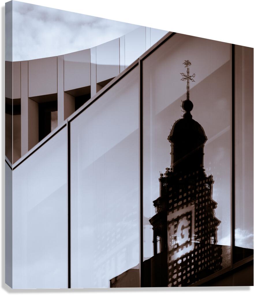 The Stadhuis van Maastricht is reflected in the windows of a nearby office building in the city centre its silhouette mirrored clearly in the glass. The weather vane atop the historic building is visible adding a distinctive architectural detail against the urban backdrop. Located in the heart of Maastricht the Stadhuis is a well-known landmark and a symbol of the city’s history and civic pride. The reflection in modern office windows creates an interesting contrast between historic and contemporary architecture highlighting the blend of old and new in the cityscape. This image is ideal for lovers of urban photography architectural contrasts or Dutch city landmarks. It is available as wall art and across a wide range of formats to suit your space or style.