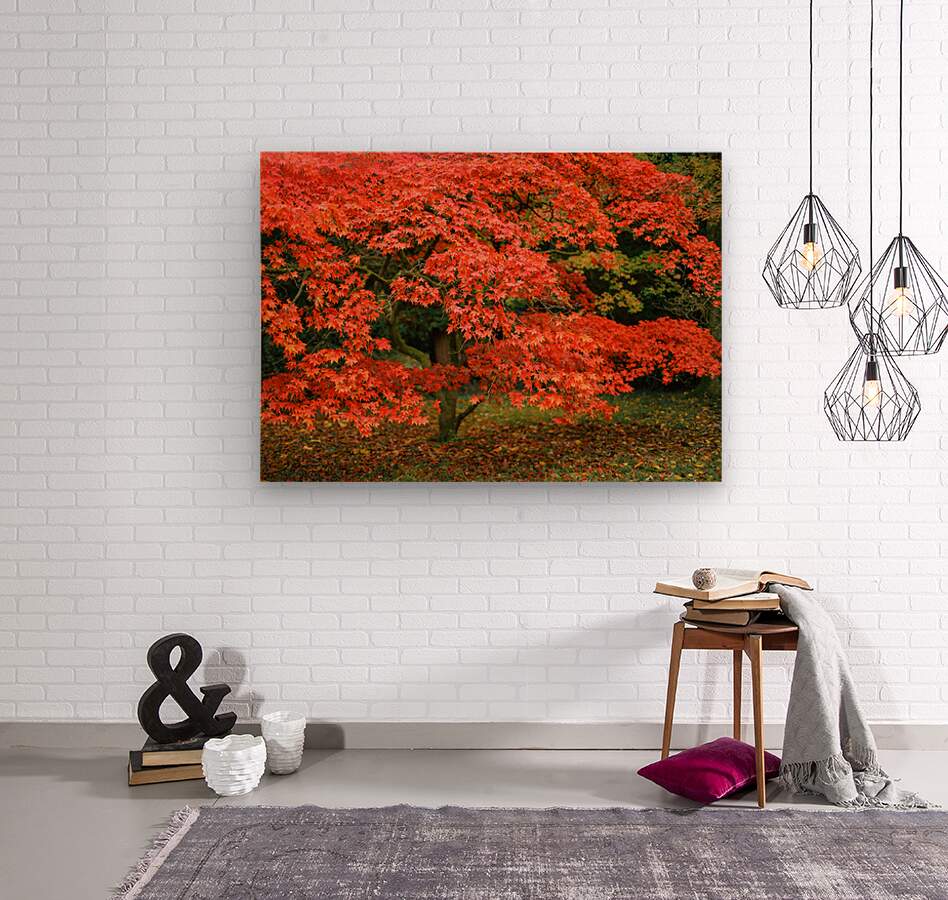 The fiery red leaves of a Japanese Maple creating a canopy that feels almost alive with colour. The branches stretch outward like open arms and the soft blur of the trunk behind them gives the leaves centre stage. Standing in front of it you feel wrapped in autumn itself as if the whole world has slowed down to let this moment burn a little brighter. Japanese Maples are celebrated for their structure and their dramatic colour shift as the season turns. Places like Westonbirt Arboretum are known for these trees drawing visitors each autumn to witness their transformation and admire the delicacy of their leaves up close. A perfect photograph for anyone who loves bold seasonal colour botanical detail and the quiet calm of nature. This image is available as wall art and across a wide range of formats to suit your space or style.