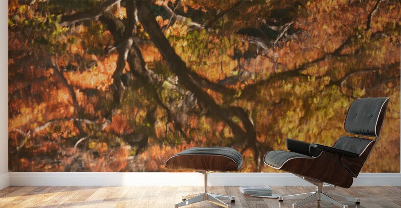 A semi-abstract view of an autumn tree reflected in a calm lake at Shinjuku Gyoen National Garden Tokyo Japan. The image captures the vibrant autumn foliage mirrored in the water creating a composition of color shape and reflection. Shinjuku Gyoen is a historic and iconic garden in Tokyo renowned for its seasonal beauty and tranquil landscapes. This scene highlights the striking autumn colors and the peaceful atmosphere of the park. A perfect image for anyone who loves Japanese gardens autumn scenery or reflective landscapes. This image is available as wall art and across a wide range of formats to suit your space or style.