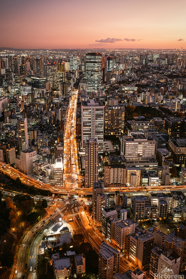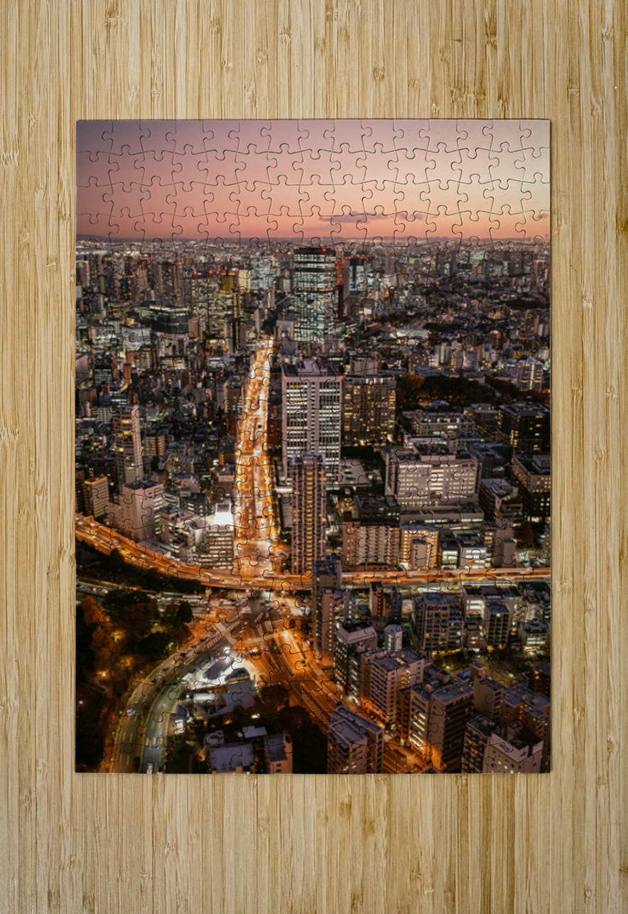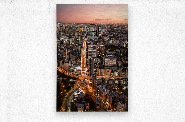 Sakurada Dori Ave cuts a bright purposeful line through Tokyo as evening settles in and the city begins to glow. Traffic lights and street lamps stretch into the distance turning the road into a ribbon of warm colour threaded between tightly packed buildings. There is a sense of momentum here the day shifting into night with countless lives moving through the streets below as the skyline quietly fills with light. Sakurada Dori is one of Tokyo’s major thoroughfares running through the heart of the city and past many of its most recognisable districts. Viewed from Tokyo Tower this elevated perspective reveals the scale and density of the capital where modern office blocks residential towers and transport arteries coexist in close proximity. The timing captures a familiar Tokyo moment when offices empty traffic thickens and the city’s nocturnal character begins to take over. A great image for lovers of urban photography modern cityscapes and contemporary Japan. This image is available as wall art and across a wide range of formats to suit your space or style.