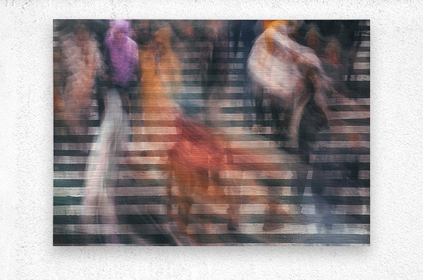 People move across Shibuya Crossing in Tokyo their figures blurred into streaks of colour and shape as they pass over the bold white stripes of the street. Coats bags and umbrellas blend together in motion while the crossing itself remains sharp beneath them. The scene captures the constant flow of pedestrians in one of the city’s busiest locations turning an everyday moment into something visually striking. Shibuya Crossing is known worldwide for its heavy foot traffic with crowds crossing in multiple directions each time the lights change. Located in central Tokyo it has become a symbol of the city’s pace and scale where thousands of people pass through every hour as part of daily life. A perfect photograph for those who enjoy urban scenes movement and modern city life. This image is available as wall art and across a wide range of formats to suit your space or style.