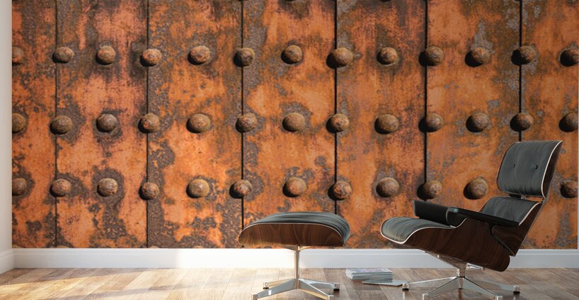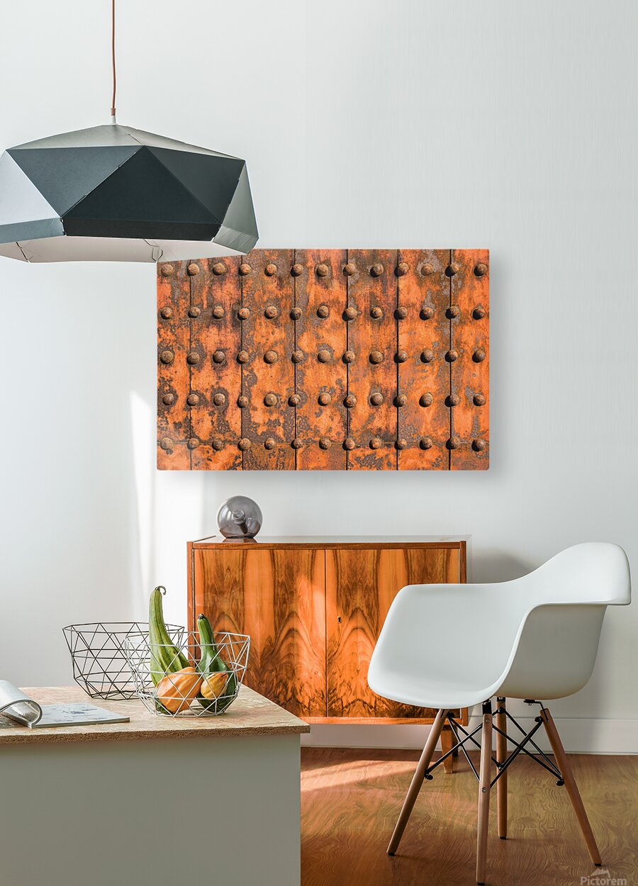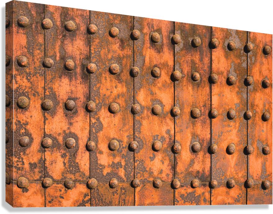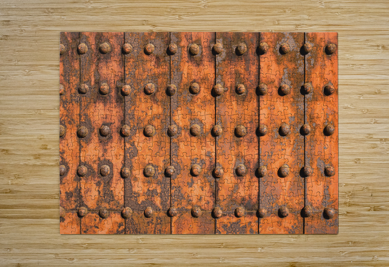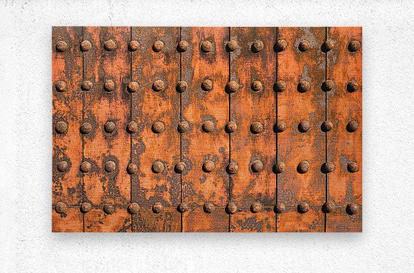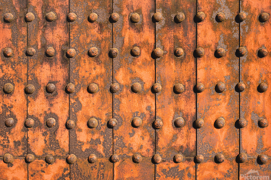 A grid of iron plates and raised rivets fills the frame their surfaces worn and oxidised into deep uneven tones that speak of time and exposure. On th...[+]