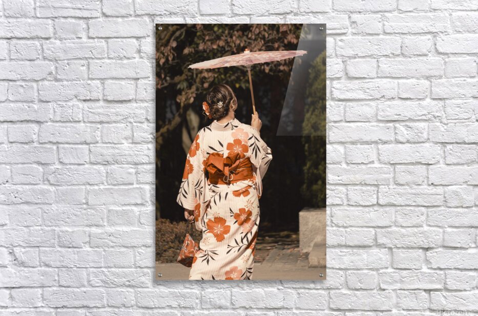 A quiet moment in a Tokyo garden as a woman in a summer yukata moves gently her parasol catching the light and echoing the soft tones of her clothing. Seen from behind there’s a sense of calm and privacy to the scene a passing glimpse rather than a posed moment with everything feeling unhurried and serene. The yukata is a lightweight informal kimono traditionally worn during the warmer months in Japan often seen at festivals or in garden settings. The parasol adds both function and elegance a familiar element that complements the seasonal atmosphere and reflects long-standing cultural traditions. A perfect photograph for those drawn to Japanese culture quiet moments and the understated beauty of traditional dress. This image is available as wall art and across a wide range of formats to suit your space or style.