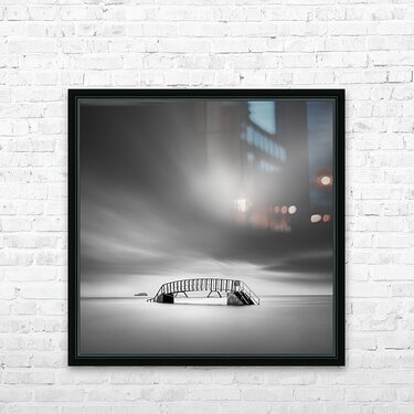 A monochrome, long exposure photograph of Belhaven Bridge, also known as the "Bridge to Nowhere," located in Dunbar, East Lothian, Scotland. Captured ...[+]