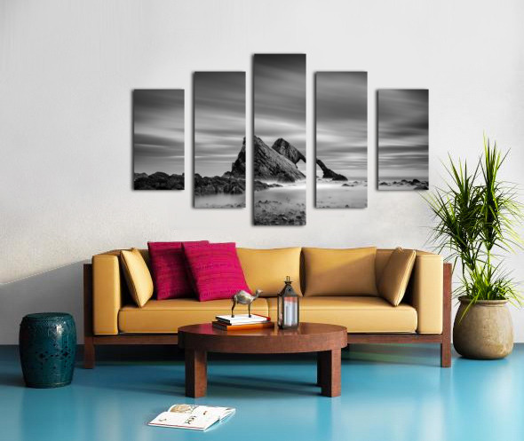 A black and white, long exposure view of Bow Fiddle Rock at Portknockie, Aberdeenshire, Scotland. The natural sea arch rises from the North Sea, its quartzite form standing prominently against the water. The long exposure smooths the surrounding sea, creating a calm, almost ethereal atmosphere around the distinctive arch. Bow Fiddle Rock is a well-known landmark on Scotland’s north-eastern coast, shaped over centuries by the relentless erosion of the sea. Its arch resembles the tip of a violin bow, giving the rock its name, while the surrounding cliffs and coastline showcase the rugged beauty of the region. A perfect image for anyone who enjoys coastal landscapes, dramatic natural formations, or the quiet beauty of Scotland’s shoreline. This image is available as wall art and across a wide range of formats to suit your space or style.