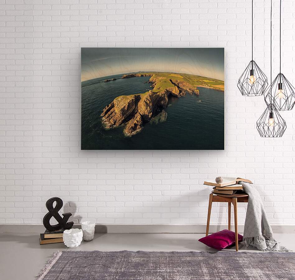 A striking aerial photograph showcasing Abereiddi Tower situated at the summit of the Trwyncastell Peninsula in Pembrokeshire West Wales bathed in the...[+]