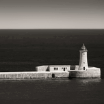A monochrome minimalist view of St Elmo Breakwater extending from Valletta into the Mediterranean Sea Malta. This black-and-white photograph captures ...[+]