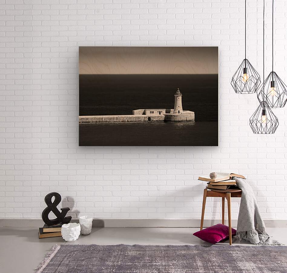 A monochrome minimalist view of St Elmo Breakwater extending from Valletta into the Mediterranean Sea Malta. This black-and-white photograph captures the stark elegance of the breakwater highlighting its geometric lines against the expansive seascape. The composition emphasizes the tranquil open space and the architectural beauty of Vallettas coastal structure. Ideal for contemporary decor architectural enthusiasts and lovers of seascapes.