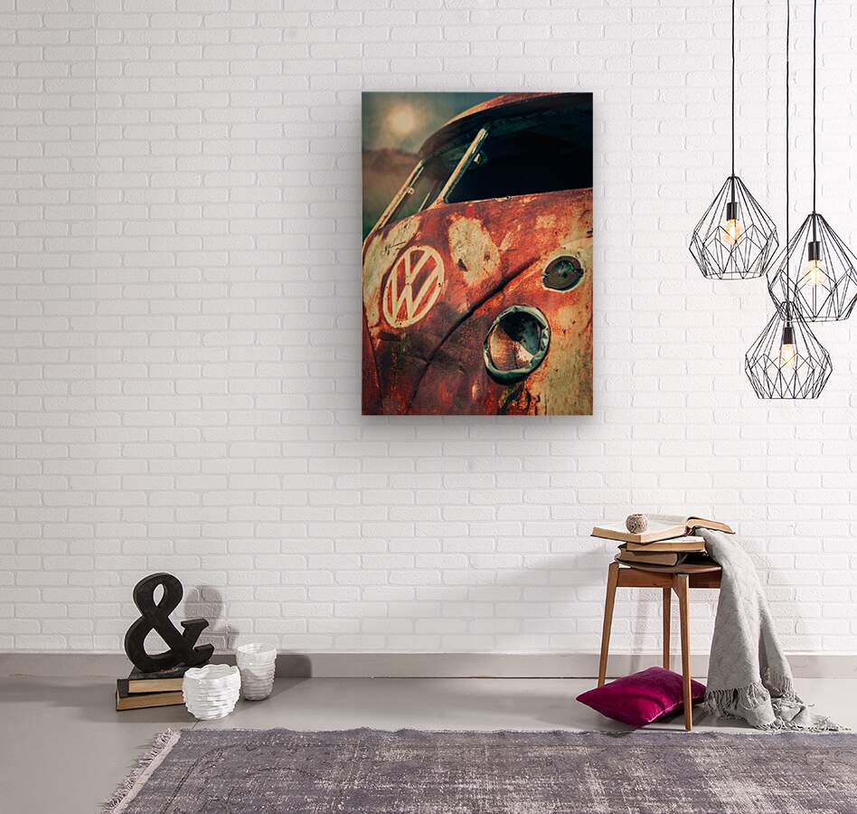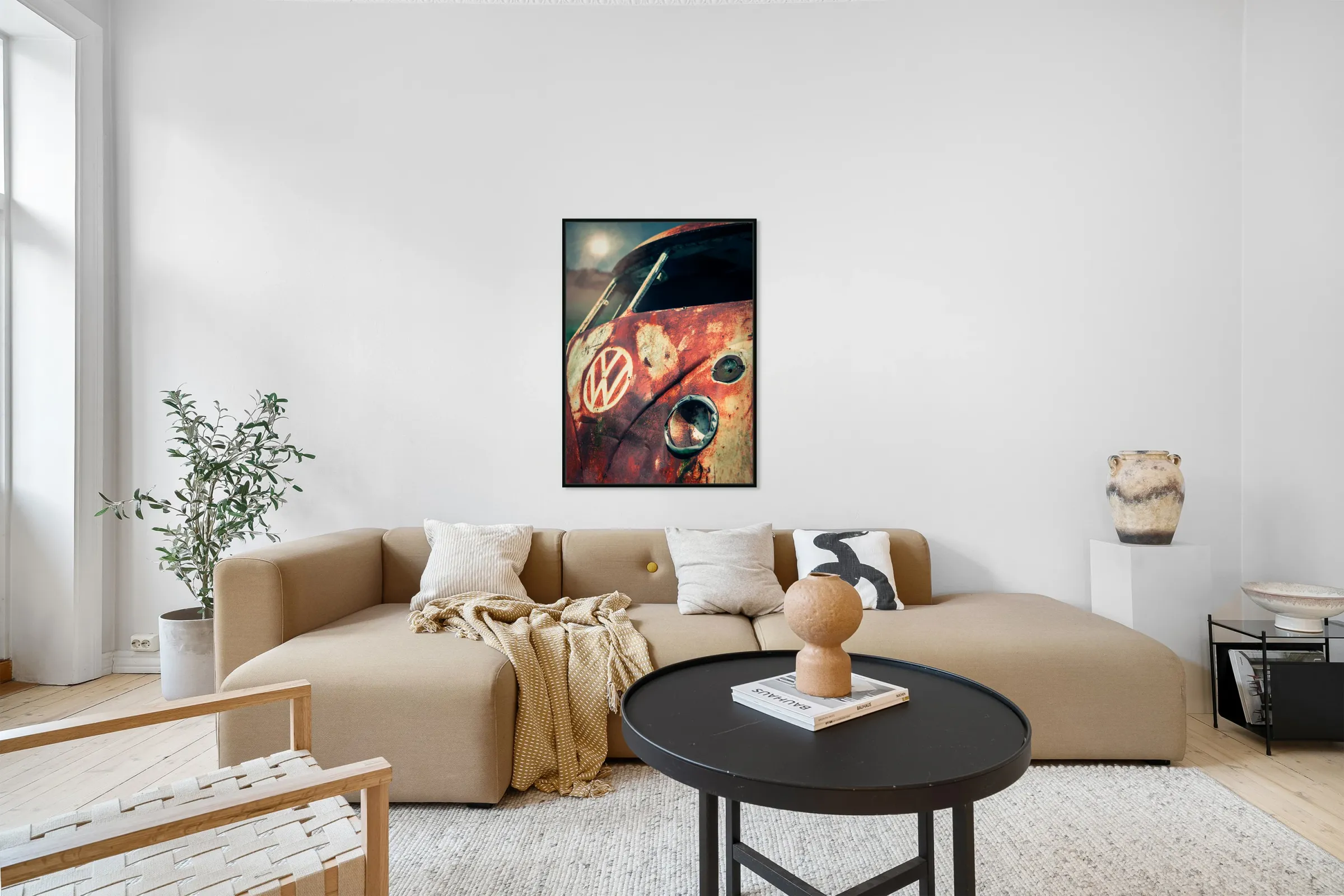 A weathered and rusted VW split-screen camper van sits abandoned and derelict in the Cameron Highlands Malaysia. This vintage vehicle with its front view captured in a state of disrepair highlights the intricate details of its decaying paintwork and nostalgic design. Ideal for those seeking evocative images of classic cars urban decay or vintage automotive history.