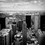 A monochrome photograph capturing the iconic Manhattan skyline with a view towards Central Park in New York City. The composition highlights the urban...[+]
