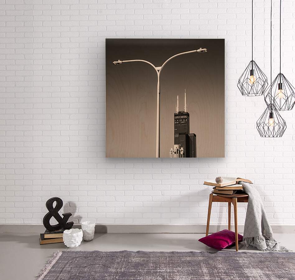 Get this artwork "Willis Tower and Lamp" in a framed print.