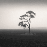 A monochrome photograph of a lone tree standing quietly in an open field near St Cyrus framed by the soft mist of an early morning in Aberdeenshire Sc...[+]