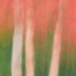 A dynamic abstract photograph of a maple tree captured through intentional camera movement ICM blending vibrant red autumn leaves with lush green foliage. This artistic composition highlights the rich colors and textures of the season creating a striking visual of nature in motion. A perfect photograph for art collectors or those seeking unique seasonal decor.