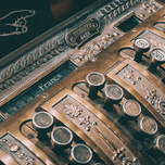 A close-up of the keys on a vintage Belgian cash register in Brussels with the word francs clearly visible. The ornate metal design hints at a bygone ...[+]