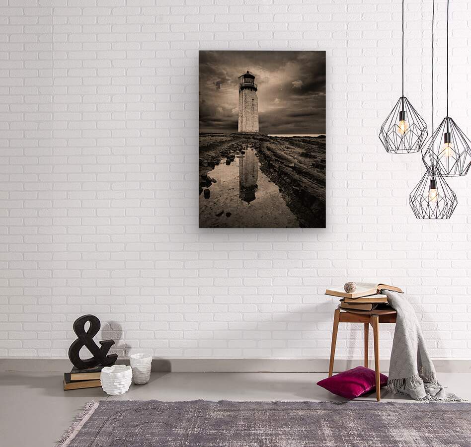 Stormy skies loom over Southerness Lighthouse in Dumfries and Galloway Scotland reflected in a still rockpool in the foreground. The dramatic clouds and mirrored composition create a strong sense of atmosphere grounded in the raw character of the coastal landscape. A great photograph for those drawn to Scotland’s wilder weather-beaten places.