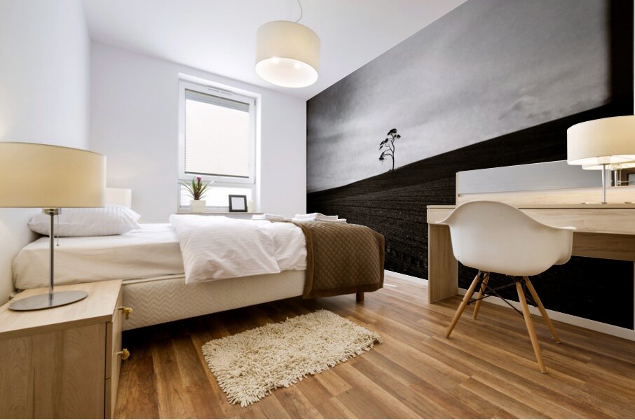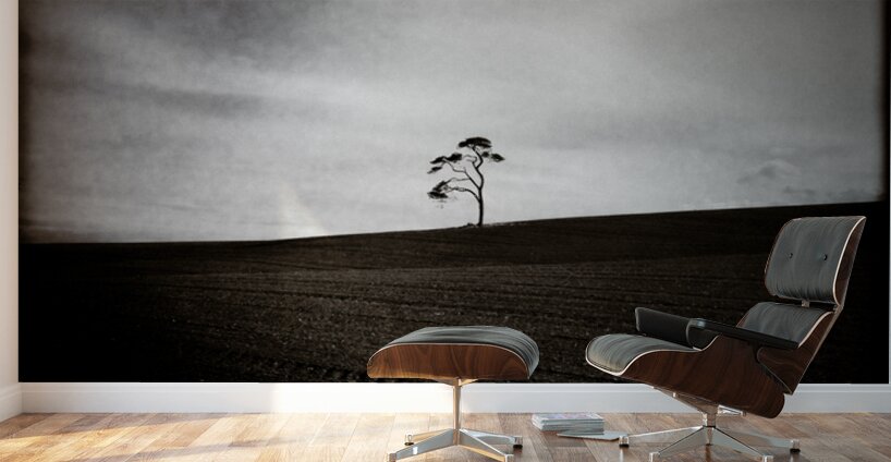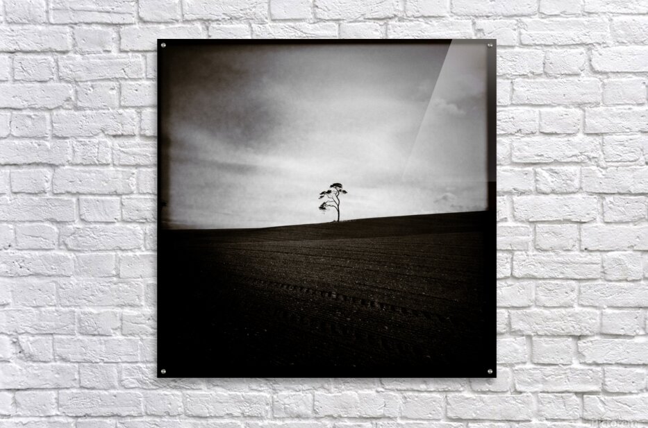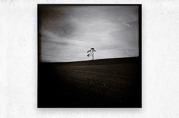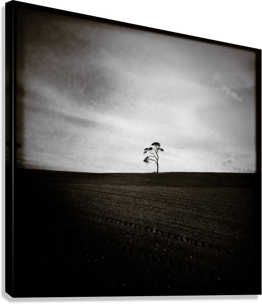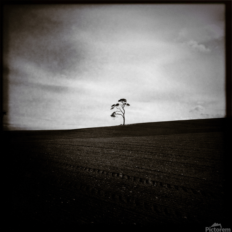 A minimalist image of a distant tree on the horizon in a field in Aberdeenshire Scotland. The freshly sown earth in the foreground adds texture and contrast while the lo-fi style gives the scene a raw understated feel. A great photograph for those who appreciate quiet simplicity and the subtle mood of rural Scottish landscapes.