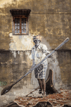 The Indian Boatman wall mural in Penang, Malaysia, featuring a painted figure rowing a wooden boat across a textured wall surface. The mural blends skilful detail with the weathered character of its surroundings, giving the scene a sense of quiet motion and connection to local life. A great photograph for those who appreciate urban art with cultural depth and a strong sense of place.