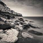 Hunstanton’s layered cliffs rise along the coast in this quiet shoreline view taken from below. Large rocks in the foreground lead the eye through the scene while the long exposure gives the sea a soft glass-like surface. Light cloud drifts above adding to the calm reflective mood. A great photograph for those who appreciate coastal landscapes with a peaceful minimalist feel.