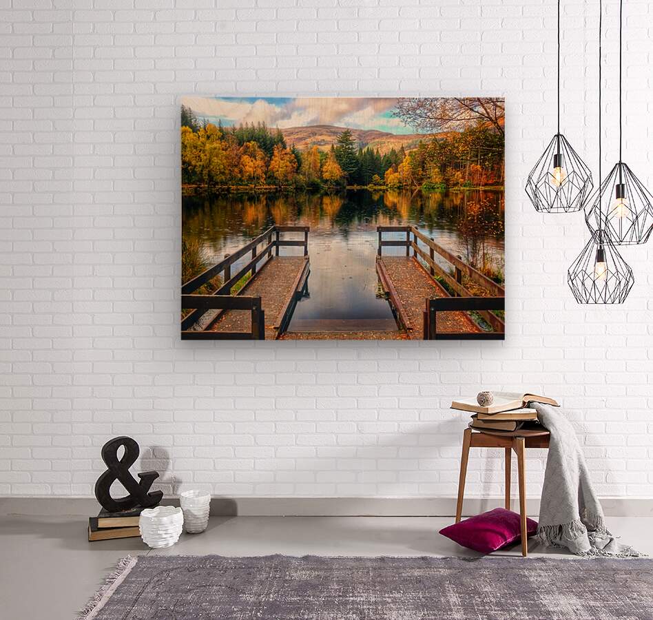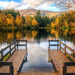 Autumn colours surround Glencoe Lochan in the Scottish Highlands with rich tones reflected in the still water. In the foreground a quiet boat jetty reaches out over the lochan while light rain dimples the surface adding a sense of calm and transience. A great photograph for those who appreciate the gentle mood of Highland autumns and moments of quiet reflection in nature.