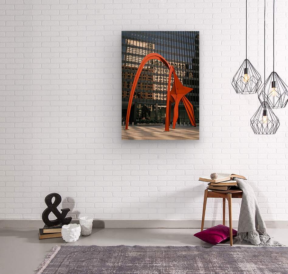 The sweeping arcs of Alexander Calder’s Flamingo sculpture stretch across Chicago’s Federal Plaza its vivid red steel set boldly against the glass and steel of the Kluczynski Federal Building. The sculpture’s branching curves rise and bend with a graceful energy their striking contrast to the rectilinear lines of the architecture drawing the eye through the scene. Subtle reflections on the building’s façade add an extra layer of depth to the setting. Since its unveiling in 1974 Flamingo has stood as a landmark of Chicago’s civic and cultural identity. Painted in Calder’s signature International Orange the sculpture commands the open plaza while engaging dynamically with the monumental scale of its surroundings. Its presence transforms the space into an interplay of form color and scale. This image is available as wall art and across a wide range of formats to suit your space or style offering a bold centerpiece for anyone drawn to modern art vivid color and striking urban design.