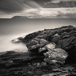 The rugged shoreline of the Kintyre peninsula frames this striking monochrome view across the Firth of Clyde toward the Isle of Arran. Layers of weath...[+]