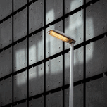 An illuminated street light stands against sunlight reflecting off the side of a nearby building in Rotterdam Netherlands. The glow of the lamp contra...[+]