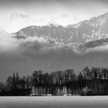Muted winter light settles over Lake Lucerne, Switzerland, where a line of moored boats rests quietly beneath a sweep of bare trees. Low cloud drifts across the scene, softening the divide between lake and mountain and giving the whole moment a calm, suspended feeling. Above it all, the snow covered peaks rise through the haze, their shapes fading gently into the sky. Lake Lucerne is known for these shifting layers of mist and mountain especially in the colder months when weather moves quickly through the valleys. The boats gathered along the shoreline hint at how lively the lake becomes in clearer seasons while the distant buildings tucked into the hillside show how closely daily life sits against this dramatic Alpine backdrop. A great image for anyone who loves mountain landscapes and peaceful winter scenes. This image is available as wall art and across a wide range of formats to suit your space or style. ..... Please Note: This image is intentionally presented with a grainy texture as part of its aesthetic.